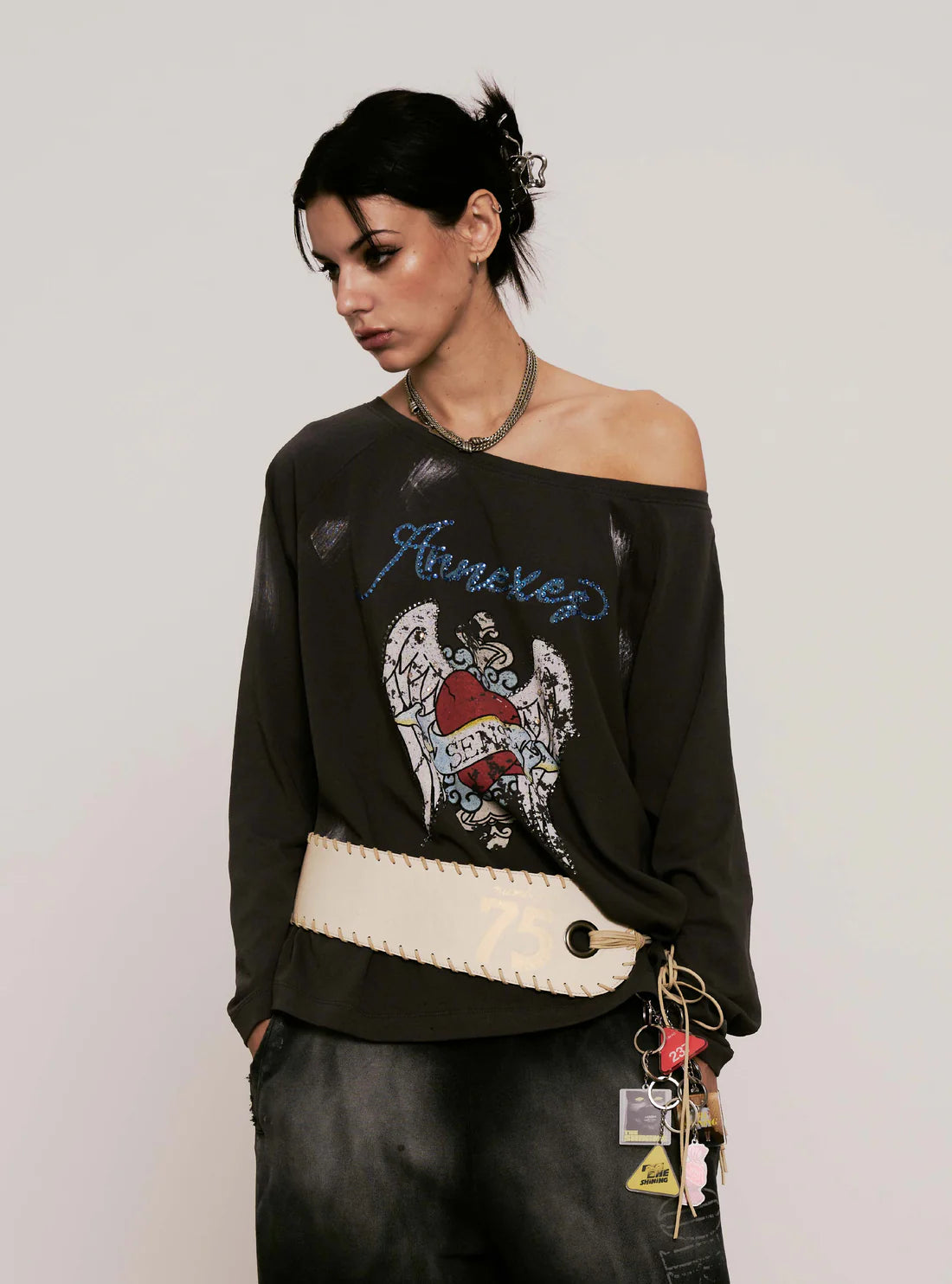 Sense Loose Fit Fake Print Blue Jeans